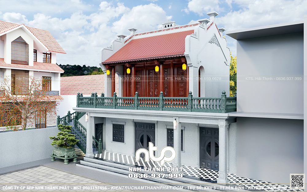 Mẫu nhà này là sự kết hợp hài hoà giữa xưa và nay giữa truyền thống và hiện đại, vừa đáp ứng công năng thực tế, vừa giữ được sự tôn nghiêm cần có của không gian tâm linh.