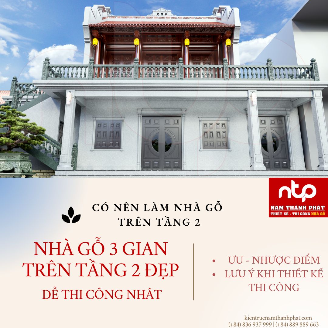 * Kết luận: Như vậy, Có nên làm nhà gỗ 3 gian trên tầng 2 hay không? Làm nhà gỗ 3 gian trên tầng 2 hay không phụ thuộc chủ yếu vào điều kiện mặt bằng, nhu cầu sử dụng và mức độ đầu tư của gia chủ. Với những gia đình quỹ đất hạn chế nhưng cần không gian thờ tự trang nghiêm, tách biệt sinh hoạt, đây là giải pháp phù hợp nếu được thiết kế đồng bộ và tính toán kết cấu chuẩn ngay từ đầu. Ngược lại, nếu nền móng yếu, ngân sách hạn chế hoặc thiếu đơn vị am hiểu nhà gỗ cổ truyền, gia chủ không nên làm để tránh rủi ro lâu dài. Điều quan trọng nhất là làm đúng kỹ thuật, đúng giá trị nhà gỗ, thay vì làm theo cảm tính.