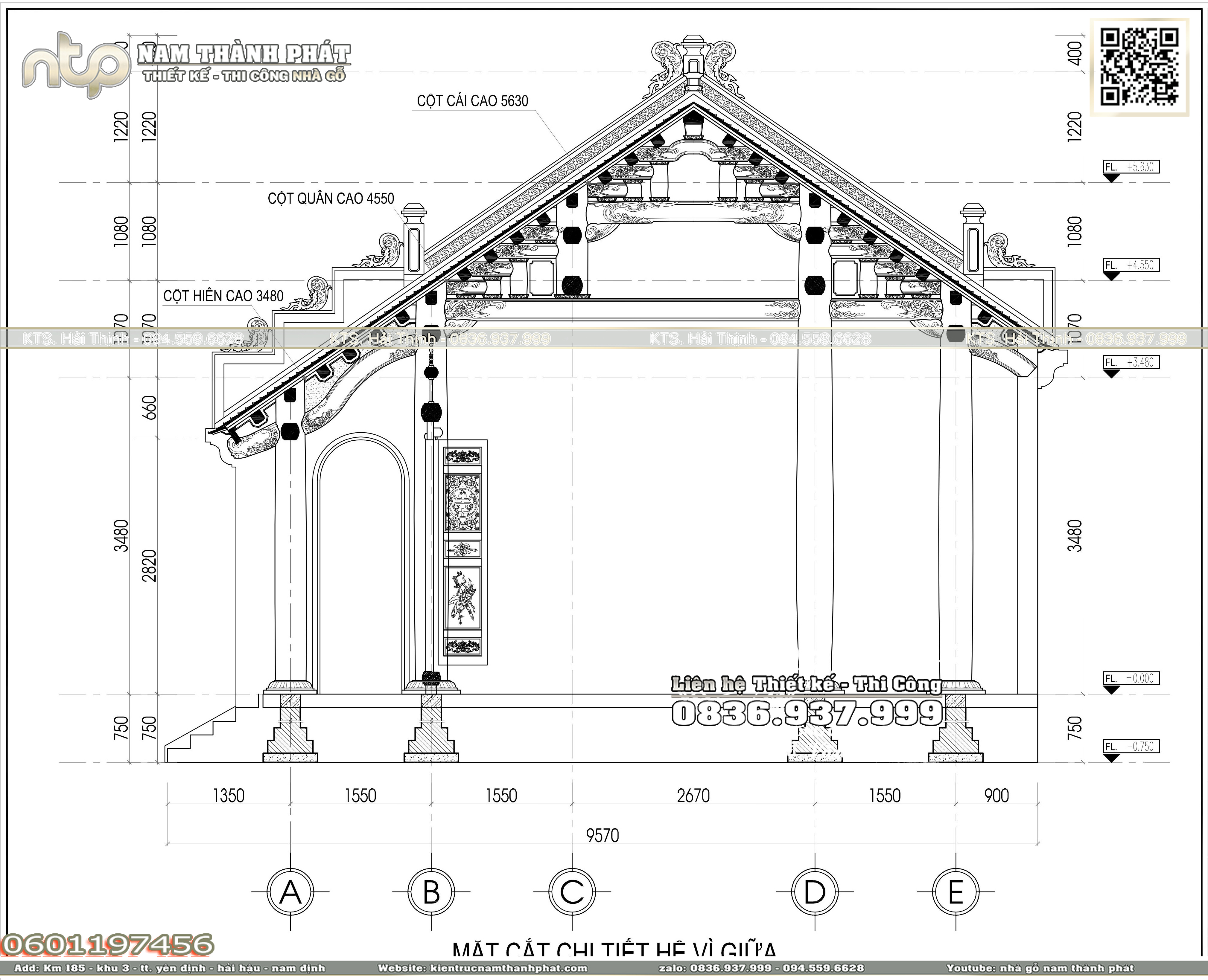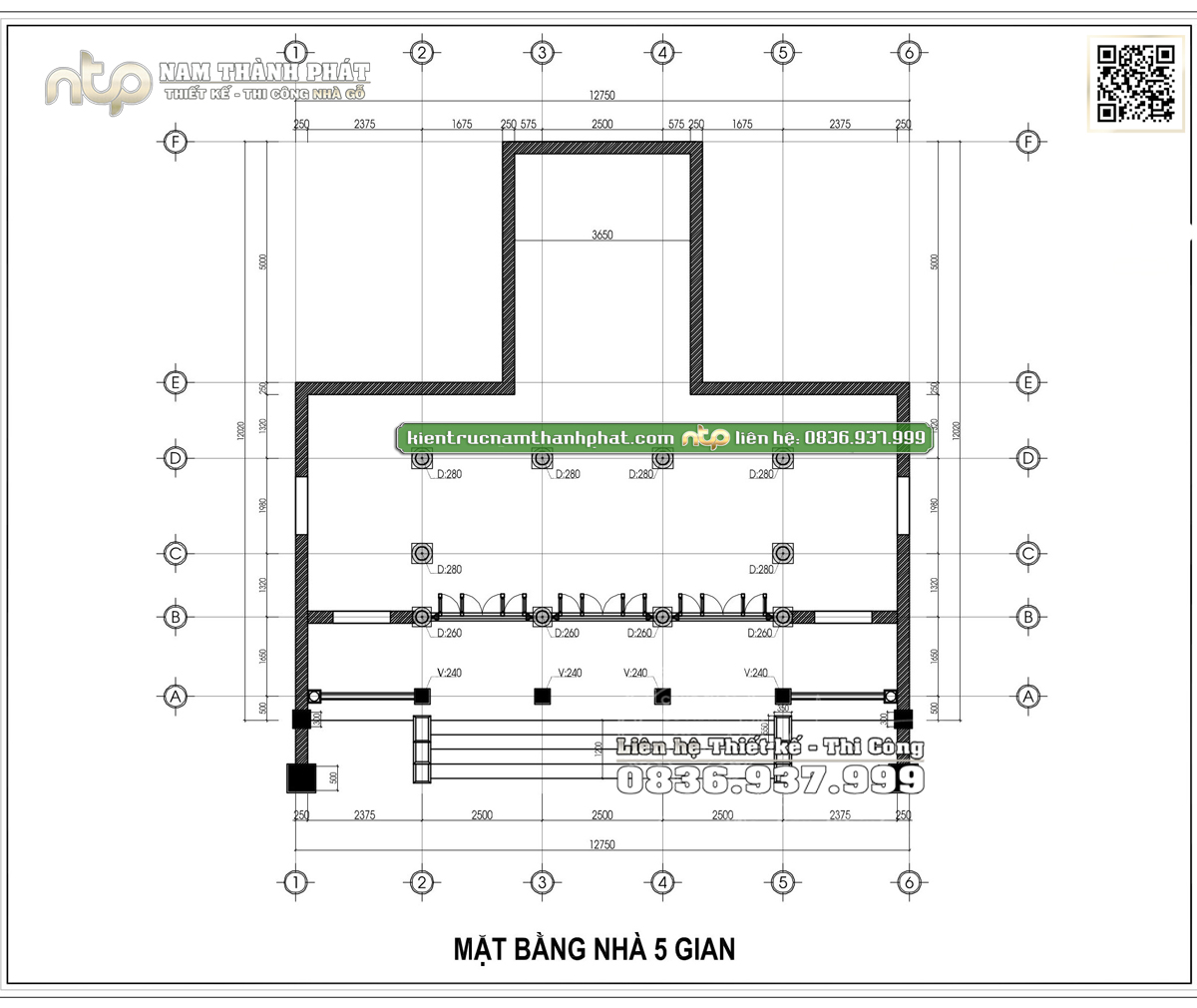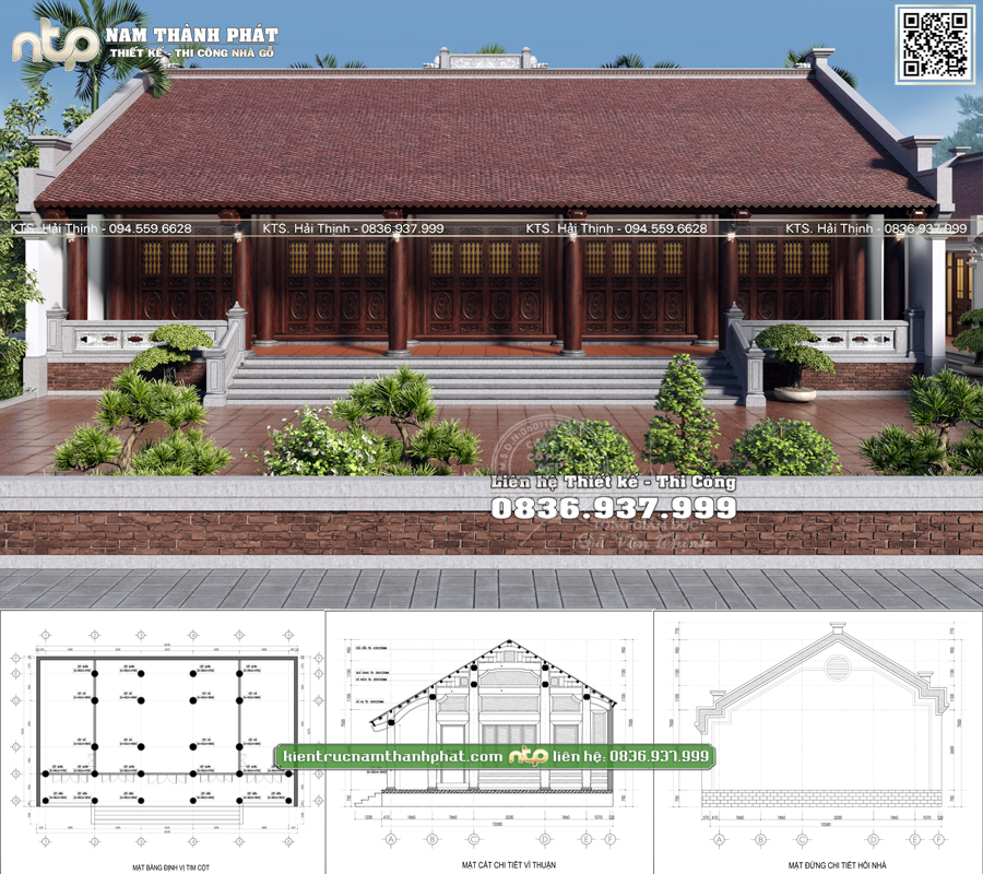 ♦ Tham khảo trọn bộ hồ sơ nhà gỗ 5 gian có hậu cung 16 cột này TẠI ĐÂY