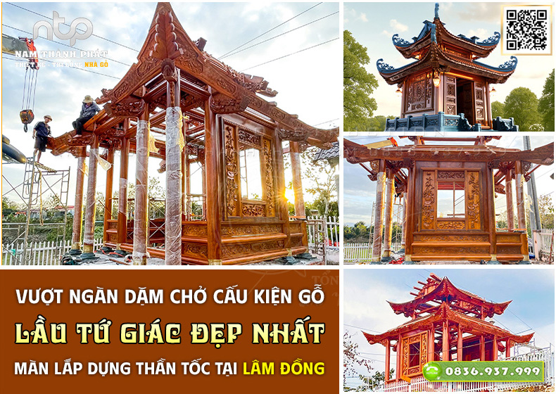 Đầu tháng 12 năm Ất Tỵ, sau khi hoàn tất công đoạn gia công và lắp thử tại xưởng, toàn bộ cấu kiện của ngôi Lầu Tứ Giác chính thức lăn bánh từ “đất tổ nghề” Nam Định, bắt đầu hành trình dài vào cao nguyên Lâm Đồng.