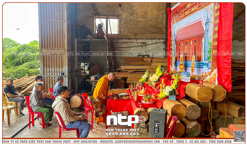 Buổi lễ diễn ra trang trọng với sự hiện diện của gia đình gia chủ, Sư thầy và đội ngũ Nam Thành Phát.