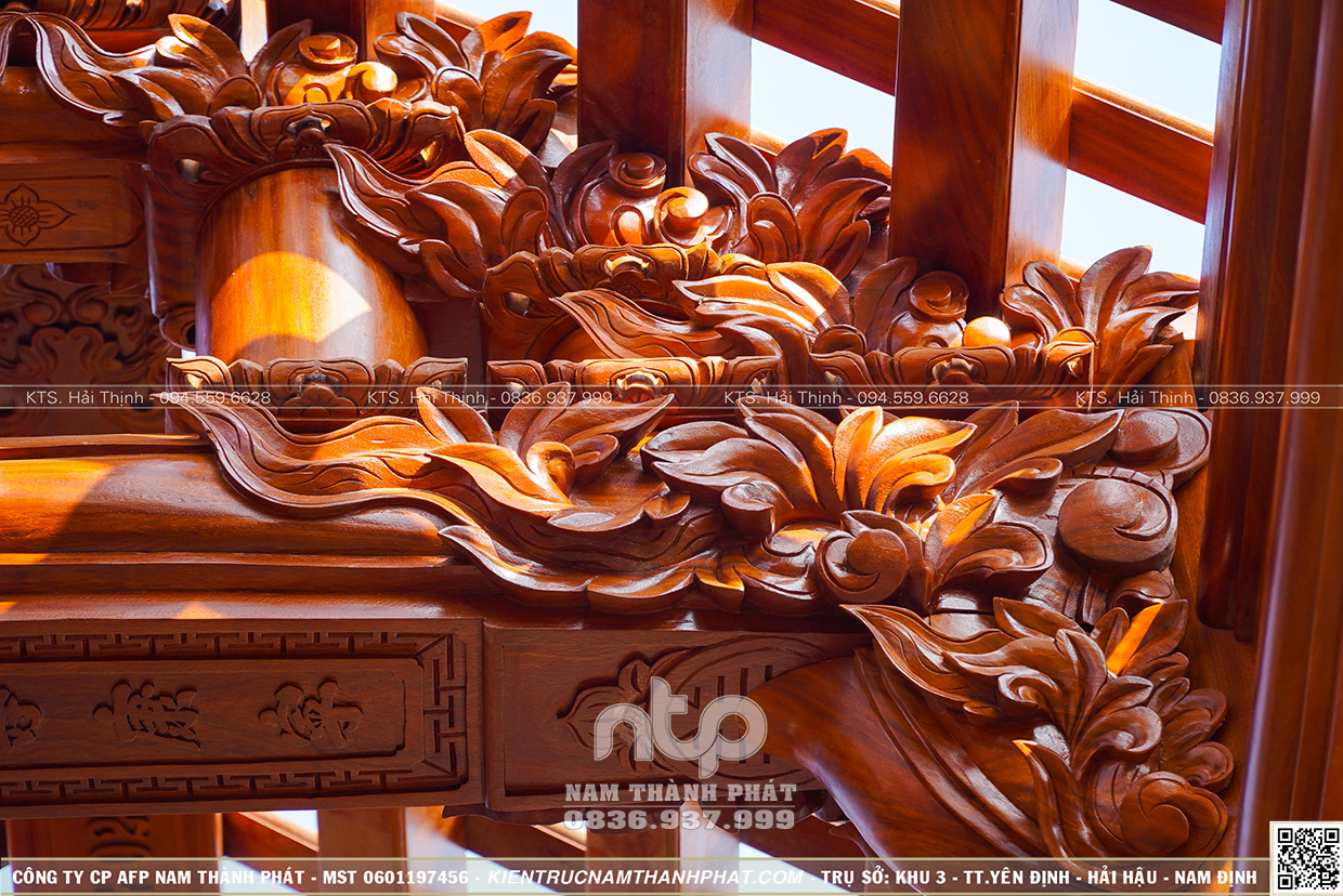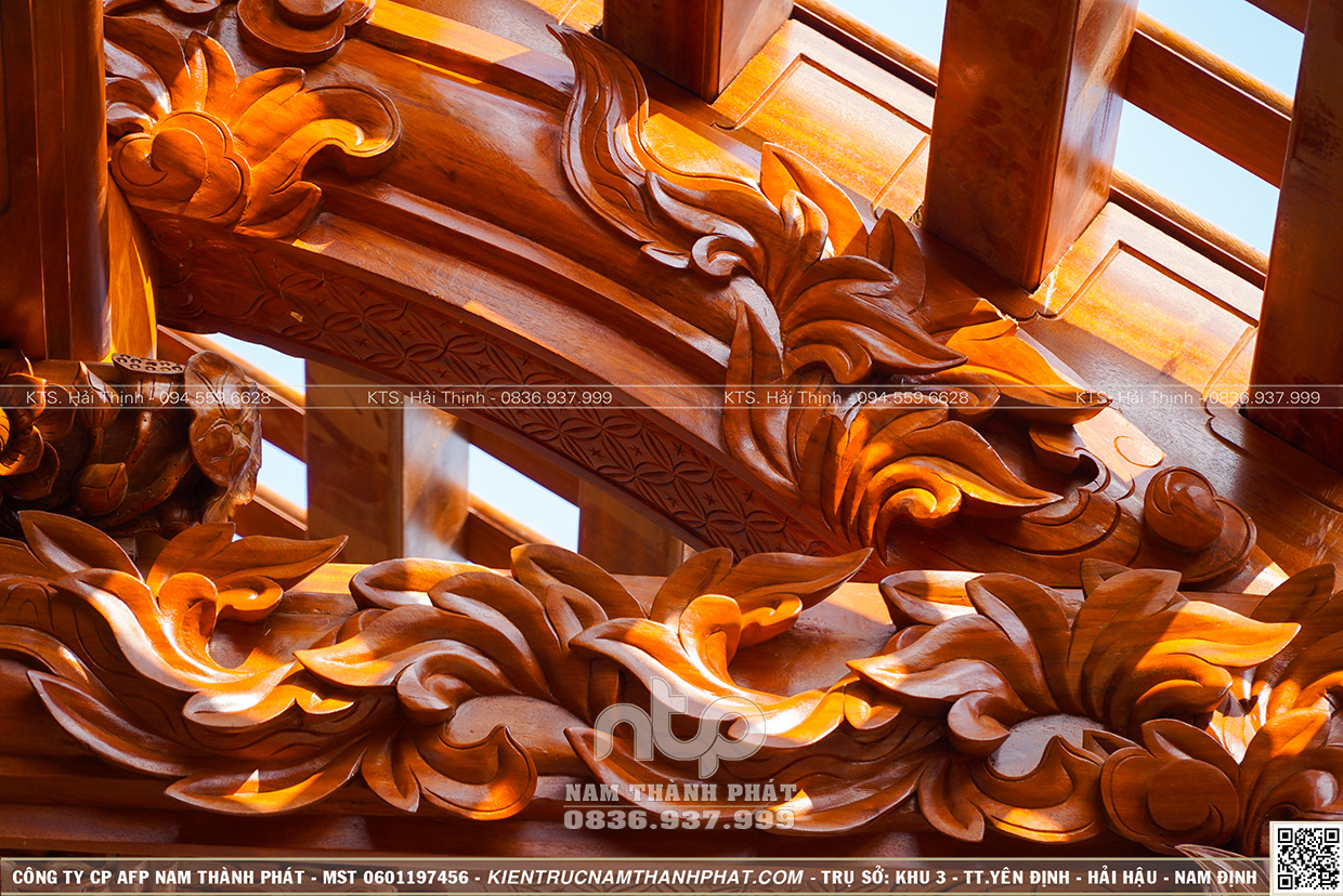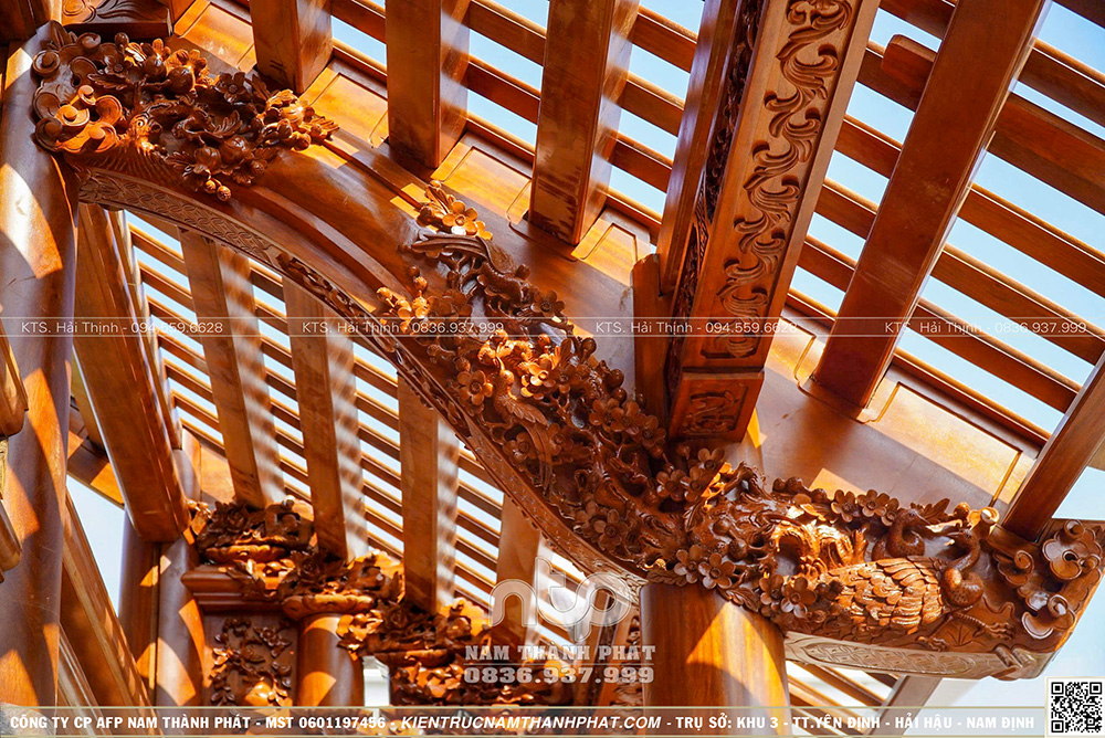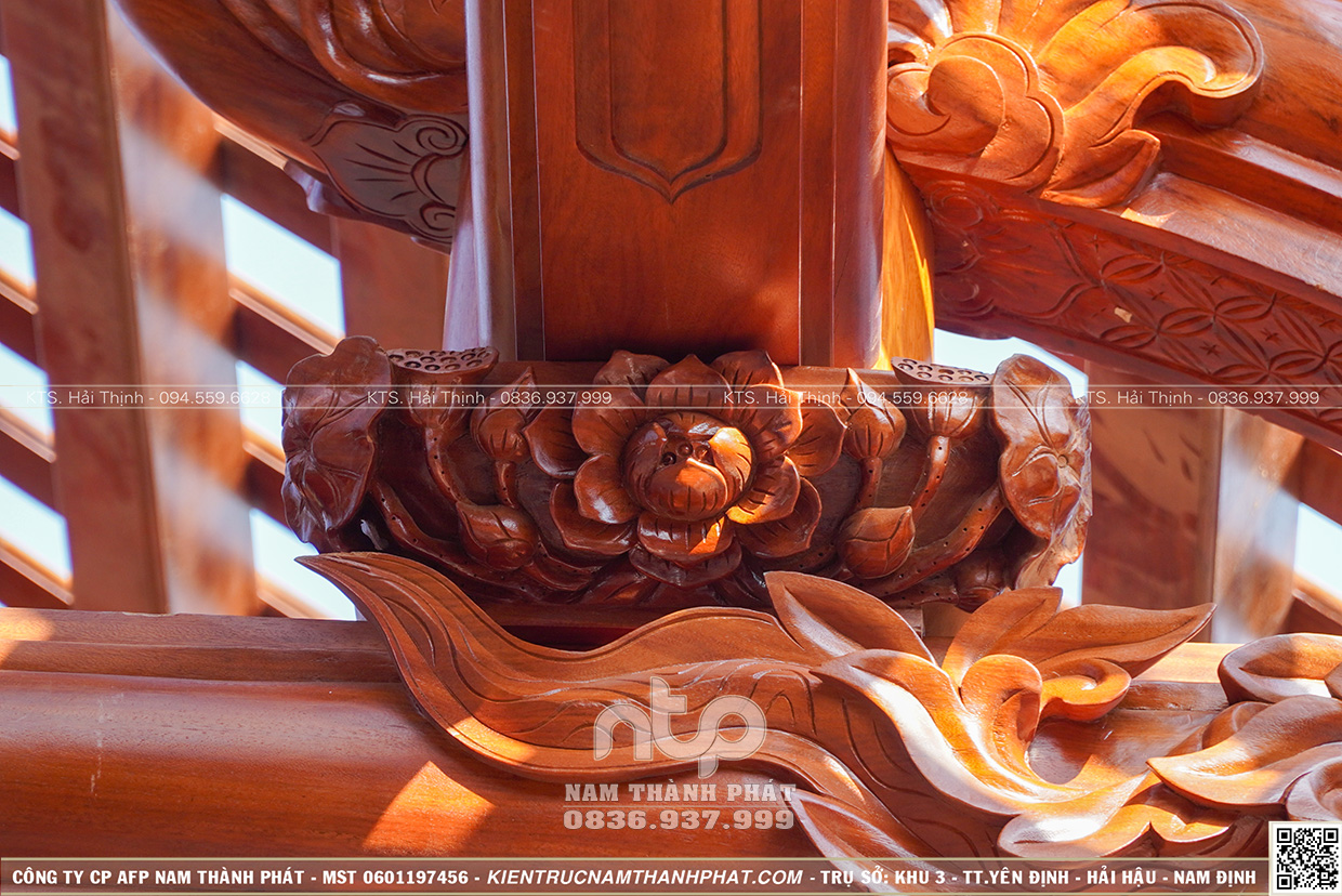 + Gồm 22 cột gỗ đứng đất (6 cột cái D35cm, 10 cột quân d32cm và 6 cột hiên D29cm)