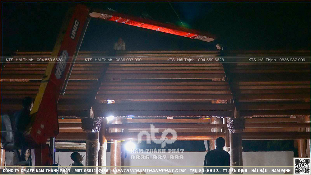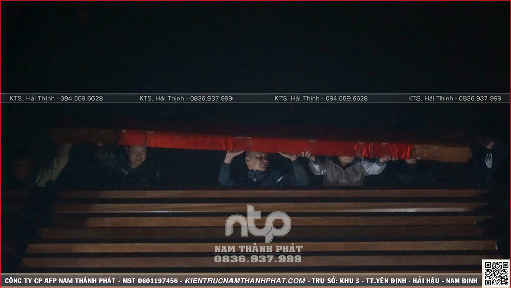 Chiếc đòn dông lim nặng trĩu được từ từ kéo lên trong ánh sáng đèn vàng hắt. Tiếng hô “Lên nào!” vang vọng giữa màn đêm Hải Phòng tĩnh mịch – từng nhịp kéo là từng nhịp tim của cả đội thợ.
