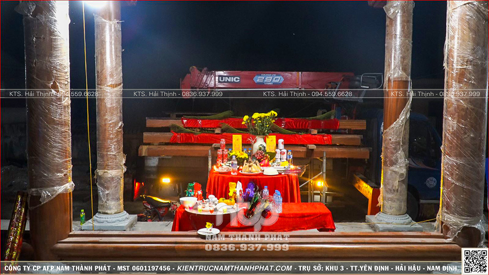 Trước khi lễ thượng lương chính thức diễn ra, mọi công tác chuẩn bị đã được đội thợ Nam Thành Phát tiến hành tỉ mỉ từng chi tiết. Không khí tại công trình từ chiều đến đêm đã mang một vẻ khác thường – vừa rộn ràng, vừa khẩn trương.