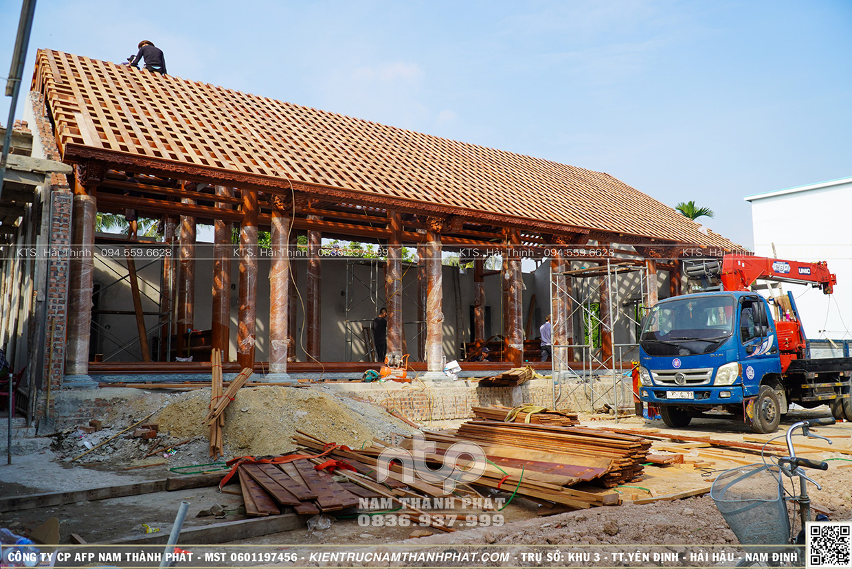Tiếp tục hành trình ấy, mời quý bạn đọc theo chân nhà gỗ Nam Thành Phát ngắm nhìn những hình ảnh đẹp nhất của quá trình lắp dựng nhà gỗ 5 gian này. Toàn cảnh buổi lễ Thượng Lương Đại Cát – diễn ra vào lúc 2 giờ sáng ngày 26 tháng 10 năm 2025, tại vùng quê Vĩnh Bảo, Hải Phòng thật trang trọng linh thiêng.