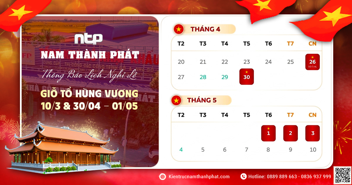 Trong suốt thời gian nghỉ lễ, quý vị có như cầu tư vấn nhà gỗ cổ truyền, vui lòng để lại lời nhắn qua holine 0889 889 663 - 0836 937 999 hoặc hệ thống website, đội ngũ Nam Thành Phát sẽ phản hồi và tư vấn nhanh nhất!