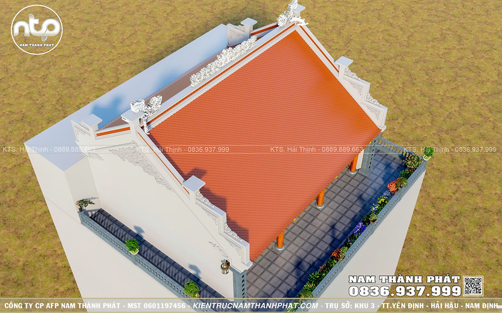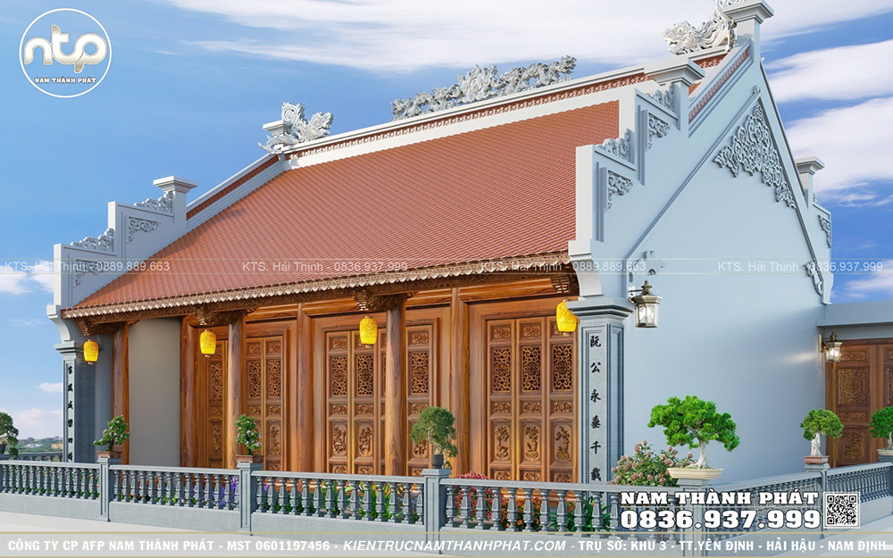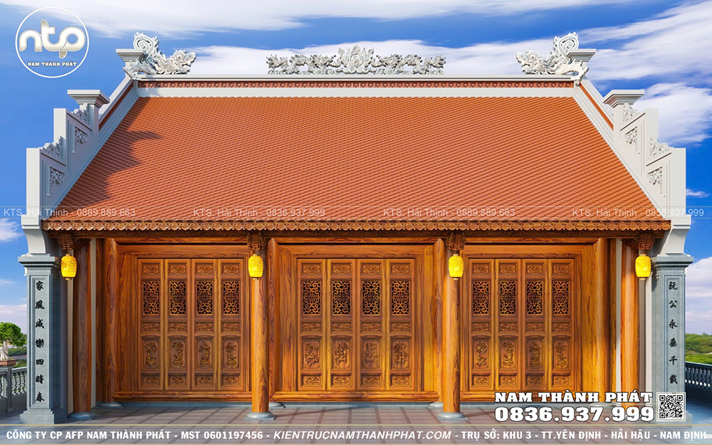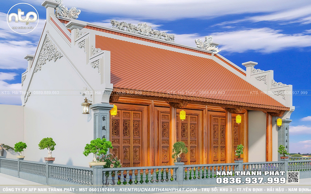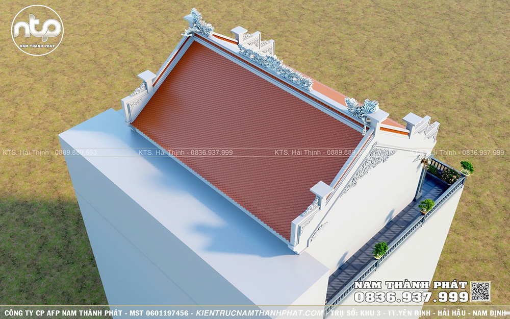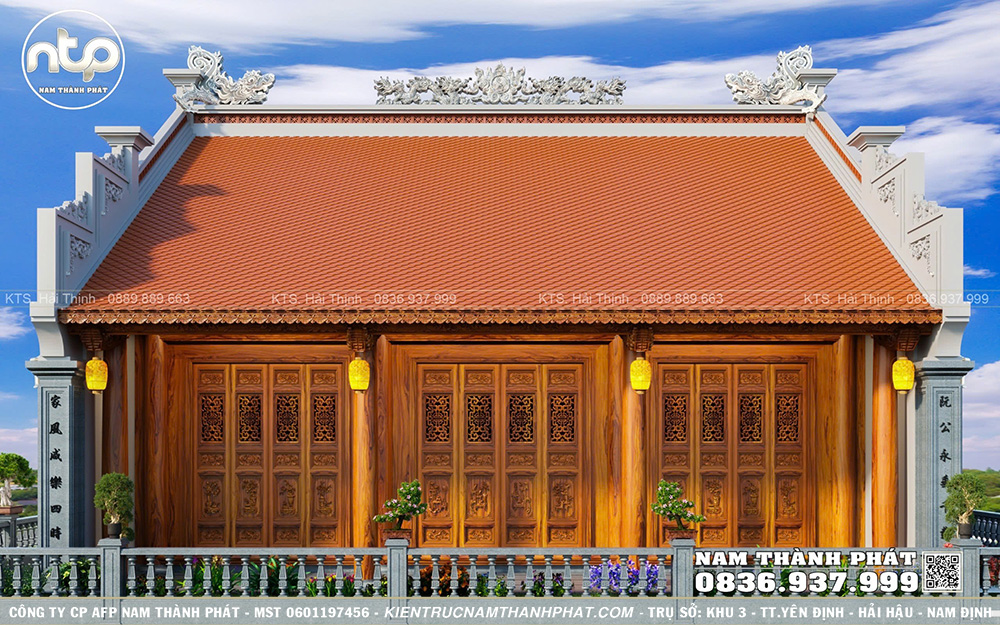 Trong bài viết này, Nam Thành Phát xin giới thiệu đến quý vị mẫu từ đường 3 gian trên tầng thượng đẹp chuẩn phong thủy, gây ấn tượng với vẻ đẹp bề thế, 2 mái đậm nét nhà gỗ truyền thống Bắc Bộ và từng chi tiết đều được chăm chút tỉ mỉ. Ngôi nhà này cũng được chúng tôi thi công tại Hà Nội trong năm 2025, quý vị có thể ghé thăm và tham khảo nhé!