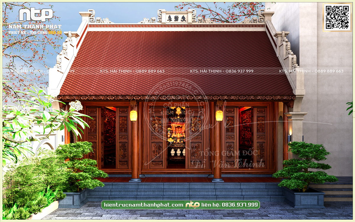 Trong bài viết này, Nhà gỗ Nam Thành Phát xin giới thiệu một mẫu ngôi từ đường 3 gian nhỏ gọn, được thiết kế liền kề nhà chính, chuẩn mực kiến trúc cổ truyền, phù hợp với nhu cầu thực tế của nhiều gia chủ hiện nay.