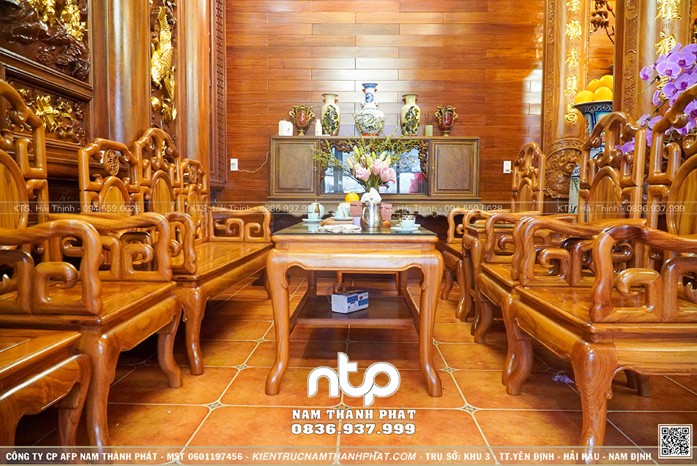 Tâm điểm của ngôi nhà chính là khu vực thờ tự ở gian trung tâm. Án gian, ngai thờ, cuốn thư và hoành phi câu đối được Nam Thành Phát thi công chuẩn mực, tạo nên một khí chất uy nghiêm và linh thiêng.