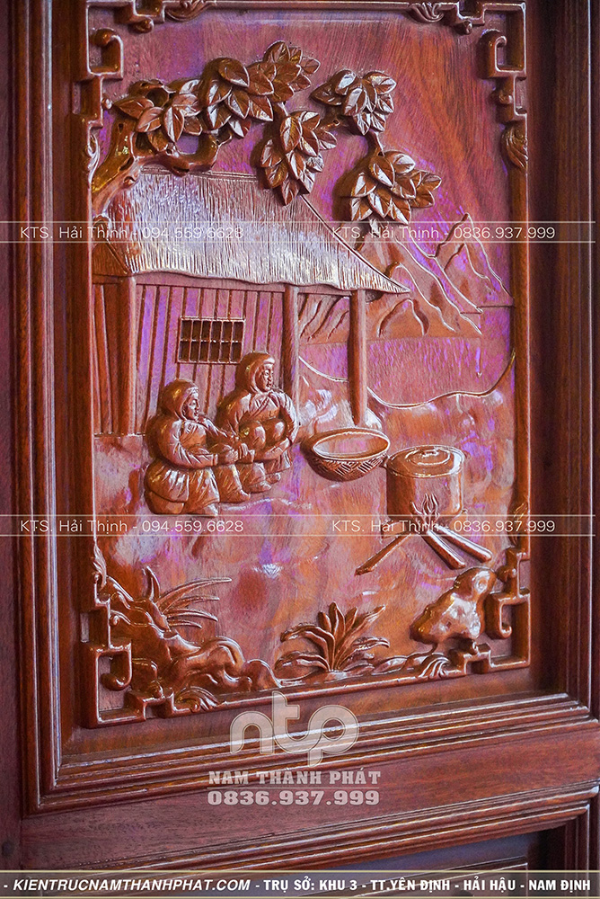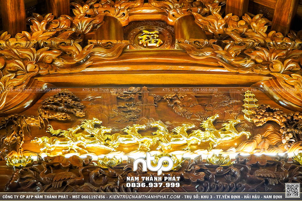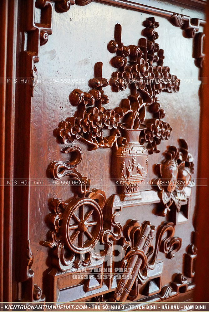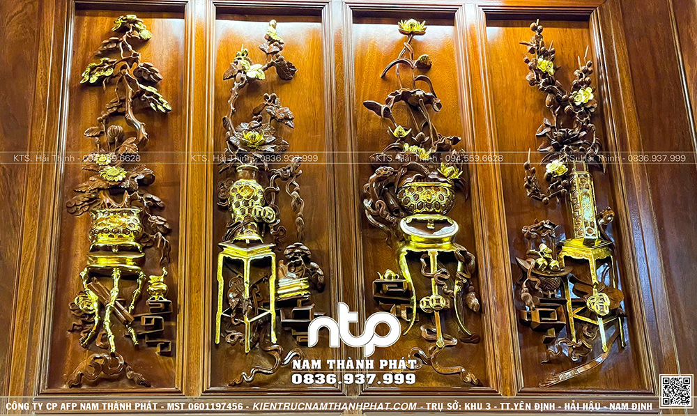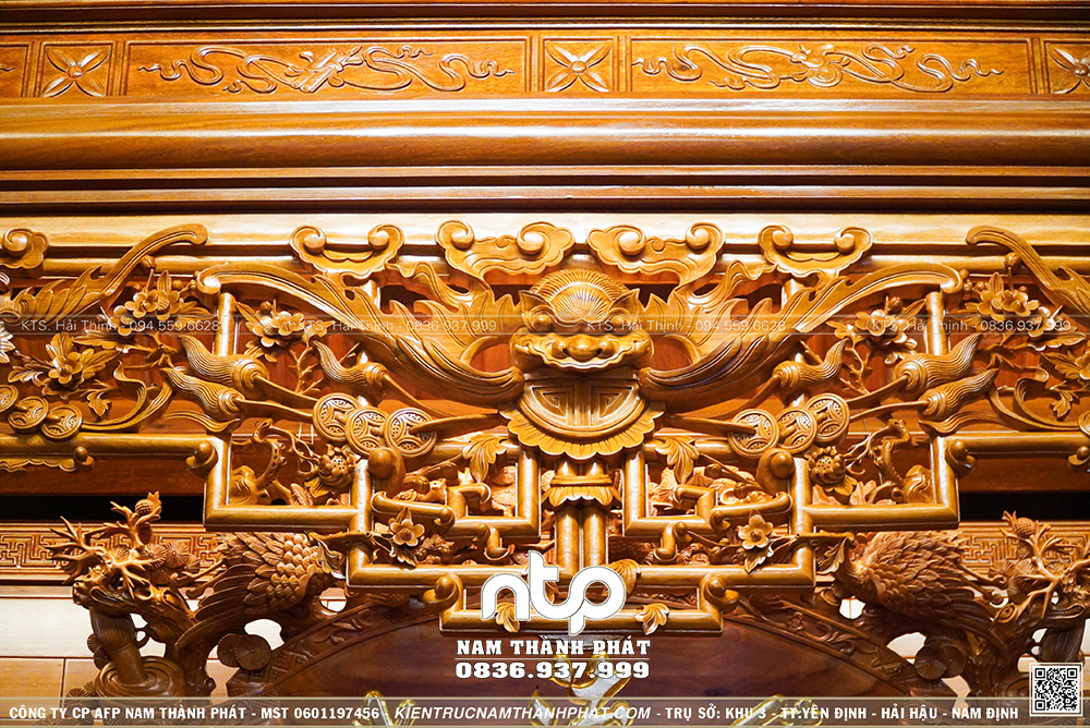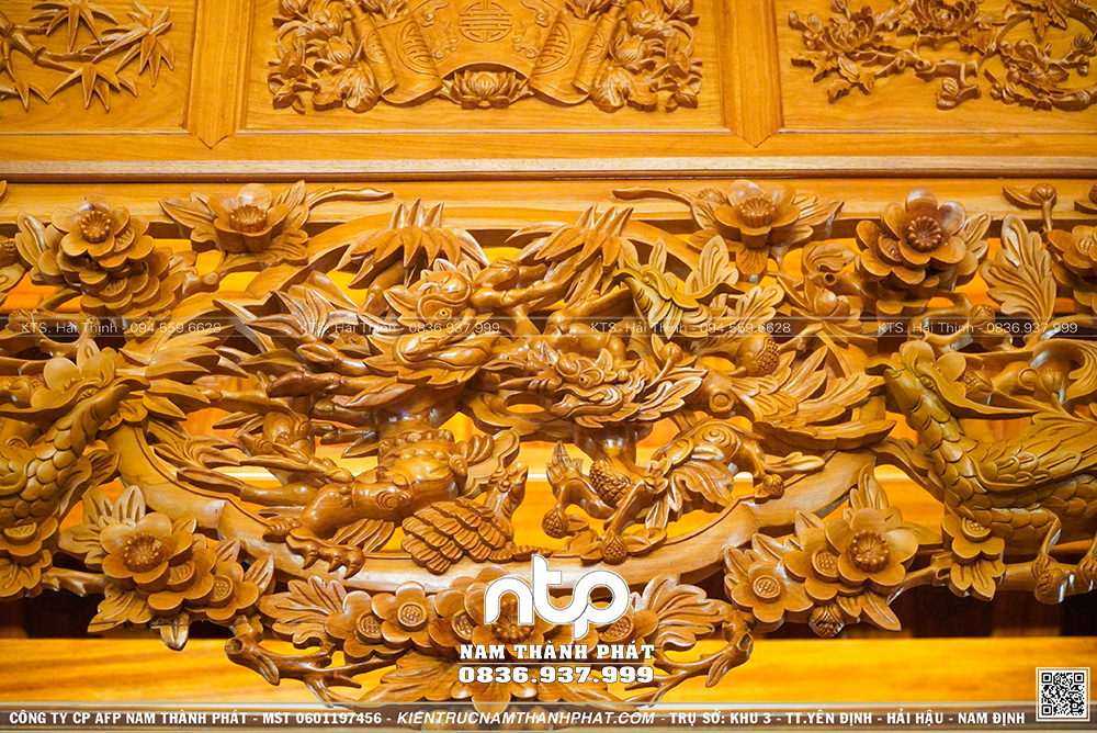 Kỹ thuật đục bong, chạm nổi đã biến những tấm gỗ vô tri thành những cảnh vật có hồn, mang ý nghĩa cầu chúc cho gia tộc luôn may mắn, tài lộc và bình an.