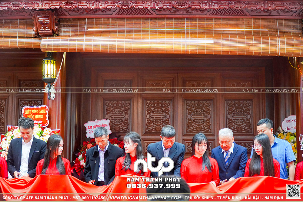 Lễ khánh thành được gia chủ tổ chức vô cùng trang trọng, với sự góp mặt chúc mừng của dàn nghệ sĩ xuất sắc. Công trình không chỉ gây ấn tượng bởi không gian nội thất chuẩn mực, những cấu kiện được ghép mộng chỉn chu mà còn là một kiệt tác kiến trúc vững về nền nếp. Đây chính là chốn thờ phụng tổ tiên linh thiêng, lưu giữ mạch nguồn văn hóa cho nhiều thế hệ mai sau của gia tộc.