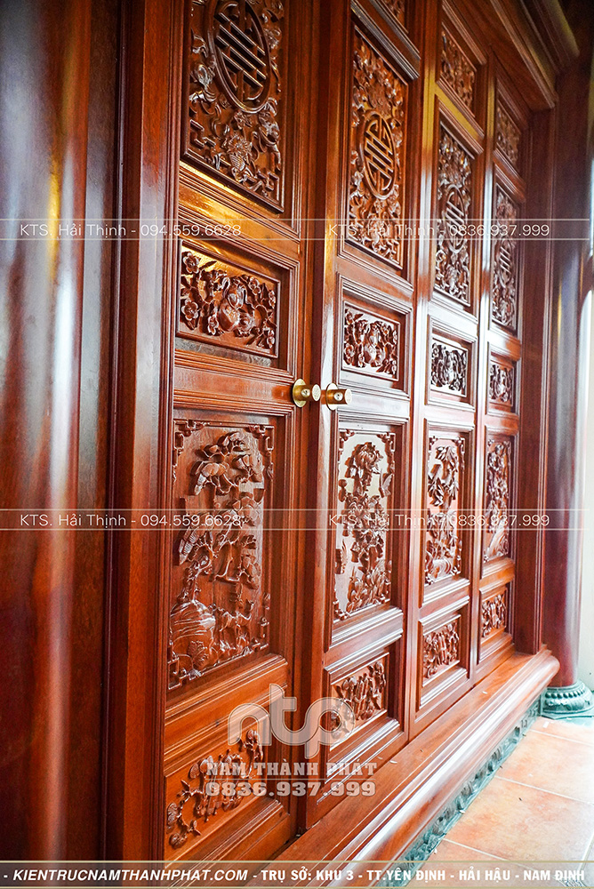 Hoa văn cửa võng được đục kênh bong tỉ mỉ