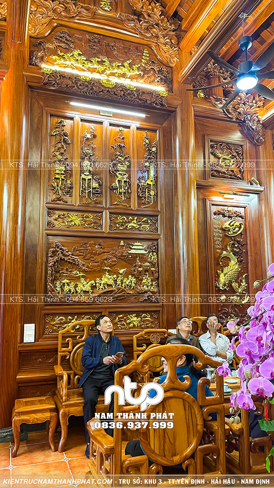 Mỗi hoa văn, mỗi đường chạm khắc trong ngôi nhà gỗ 5 gian này đều là một câu chuyện về văn hóa và lòng tâm huyết. Ngay sau đây, kính mời quý vị cùng chiêm ngưỡng những hình ảnh chi tiết nhất về từng góc nhỏ trong kiệt tác này để cảm nhận rõ hơn cái "tầm" của một công trình để đời.