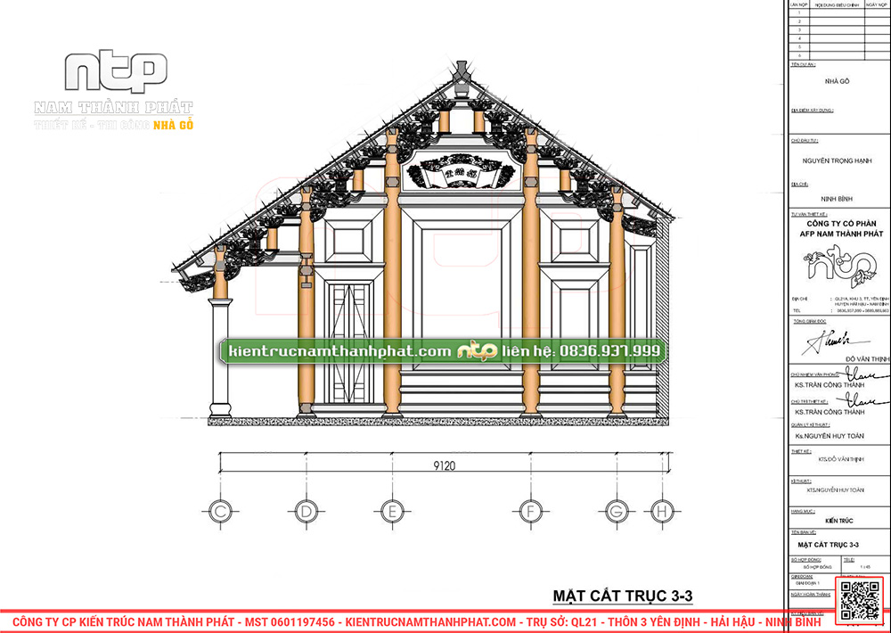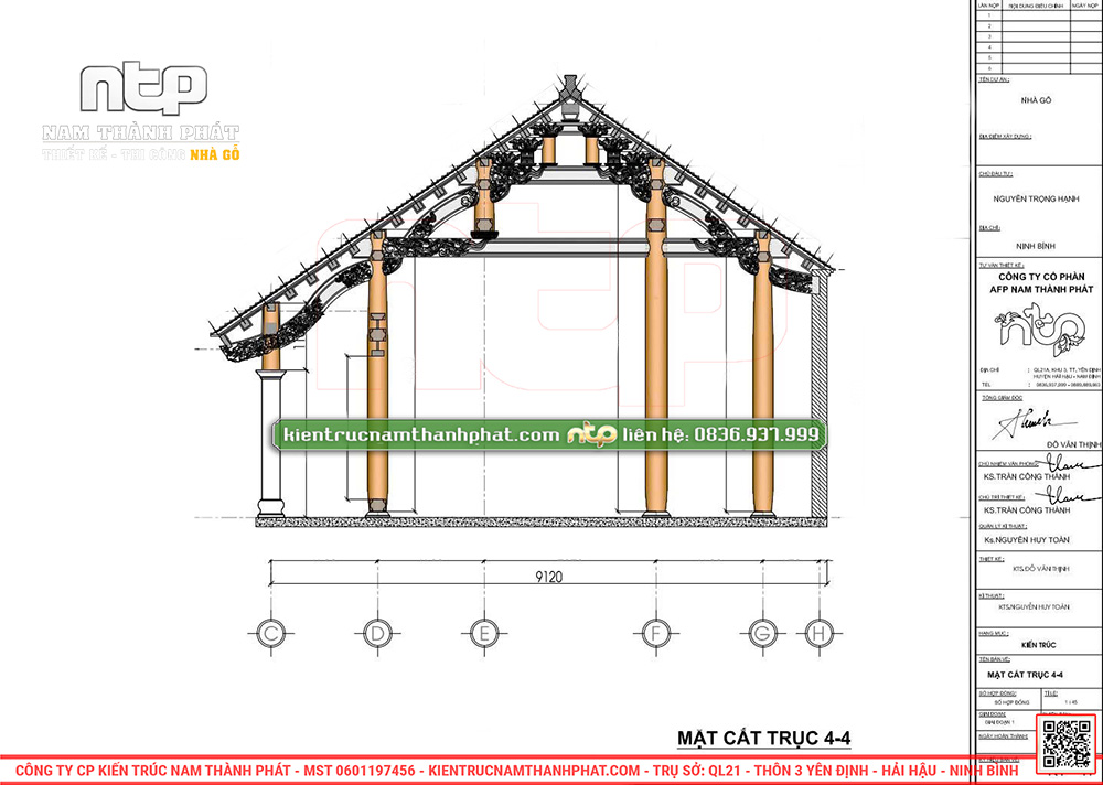 Khi nhận thi công bất kỳ công trình nhà gỗ cổ truyền nào, Nam Thành Phát luôn đặt ưu tiên hàng đầu là tư vấn thiết kế chi tiết cho gia chủ. Chúng tôi cung cấp bộ hồ sơ hoàn chỉnh gồm bản vẽ kỹ thuật 2D và phối cảnh 3D chi tiết và sinh động, giúp gia chủ hình dung rõ ràng kích thước thông số và không gian tương lai về mẫu nhà. Đồng thời, Nam Thành Phát cũng cung cấp đầy đủ hồ sơ cấp phép xây dựng một cách nhanh chóng và thuận tiện.