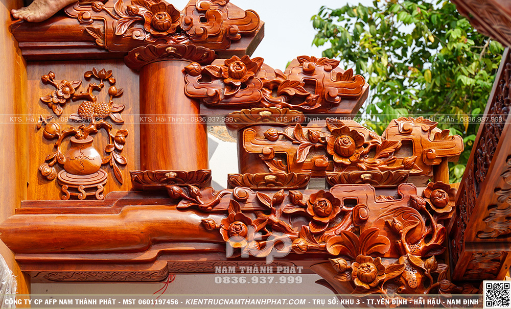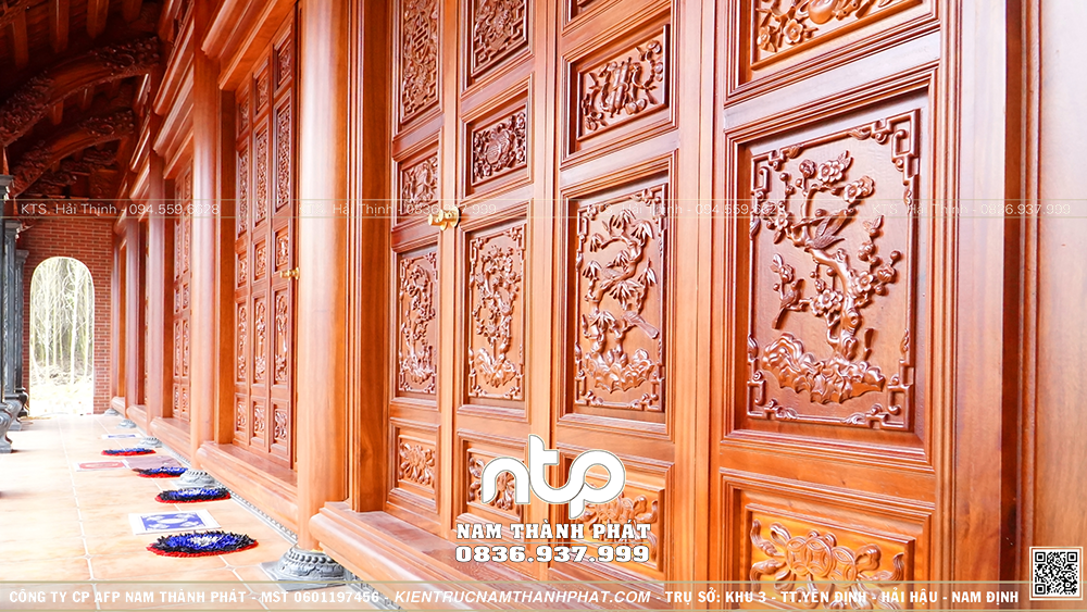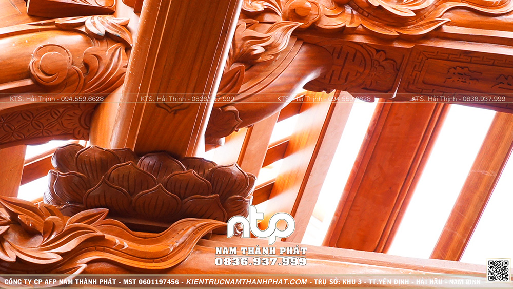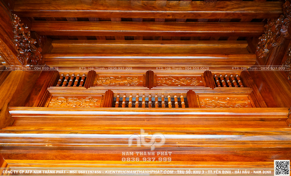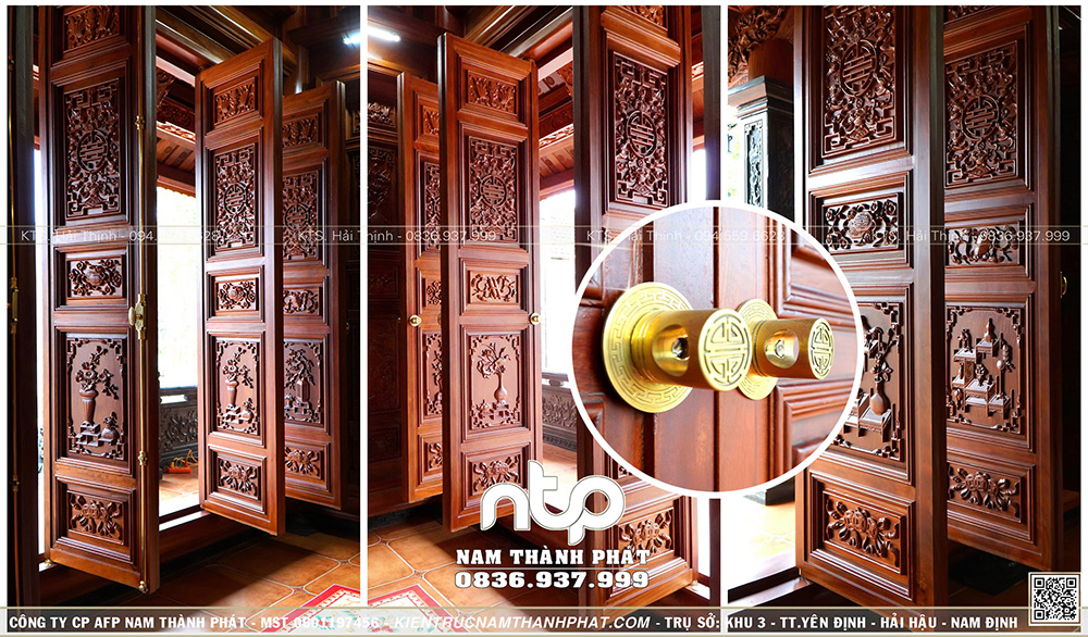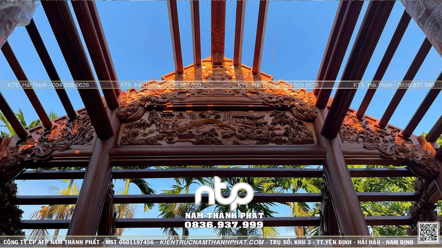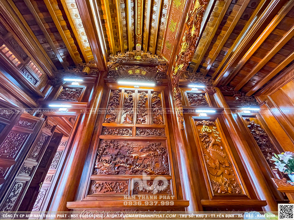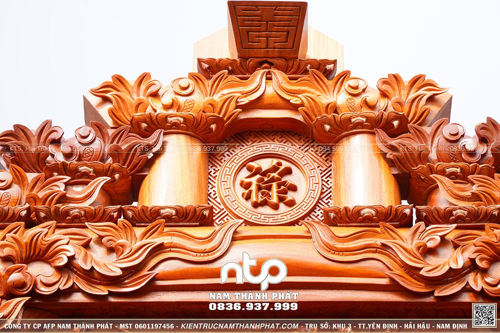 Khi tư vấn thiết kế, Nam Thành Phát luôn chú trọng đến tỷ lệ, điểm vàng và hướng đặt để cuốn thư không chỉ đẹp về hình khối mà còn hài hòa phong thủy, tôn trọn vẻ tinh tế cho không gian nhà gỗ cổ truyền.