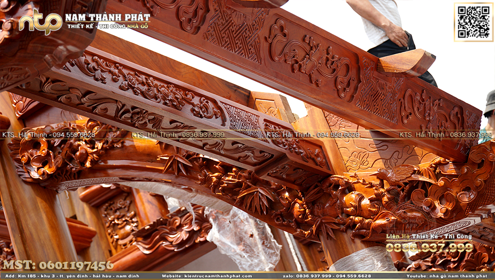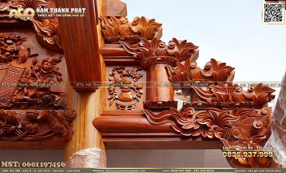 Tại Nam Thành Phát, kỹ thuật đục kênh bong sâu và chạm lộng tinh xảo chính là điểm khác biệt làm nên dấu ấn thương hiệu, giúp từng họa tiết có độ nổi, chiều sâu và sức sống riêng, để mỗi công trình không chỉ là ngôi nhà, mà là một tác phẩm mang nét đẹp riêng của từng nếp nhà gỗ Việt.