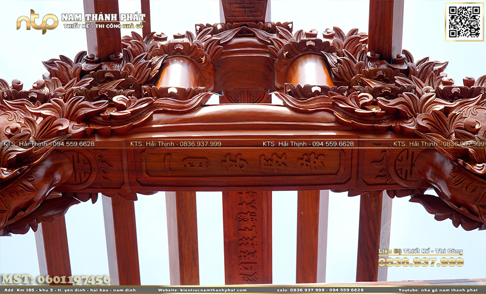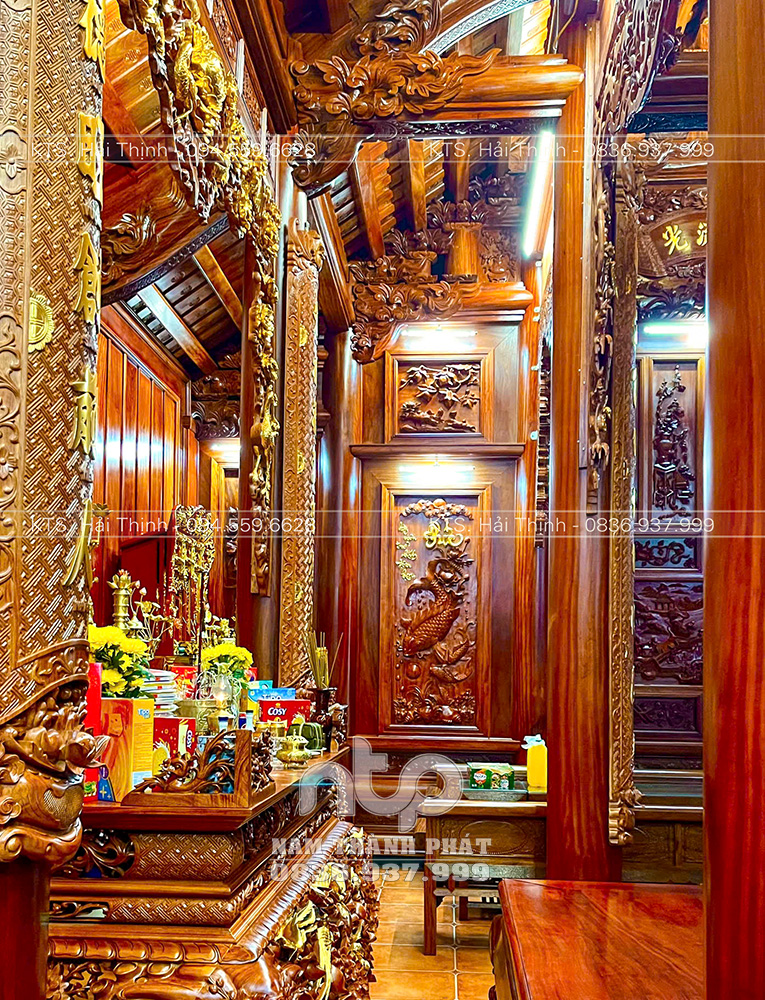 Mỗi chi tiết đều được các bác thợ lành nghề gửi gắm tâm huyết, chạm khắc kênh bong tinh xảo, tạo nên tác phẩm vừa bền chắc vừa giàu giá trị tinh thần, mang lại năng lượng cát lành cho ngôi nhà.
