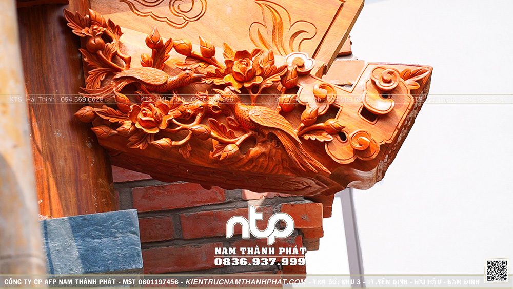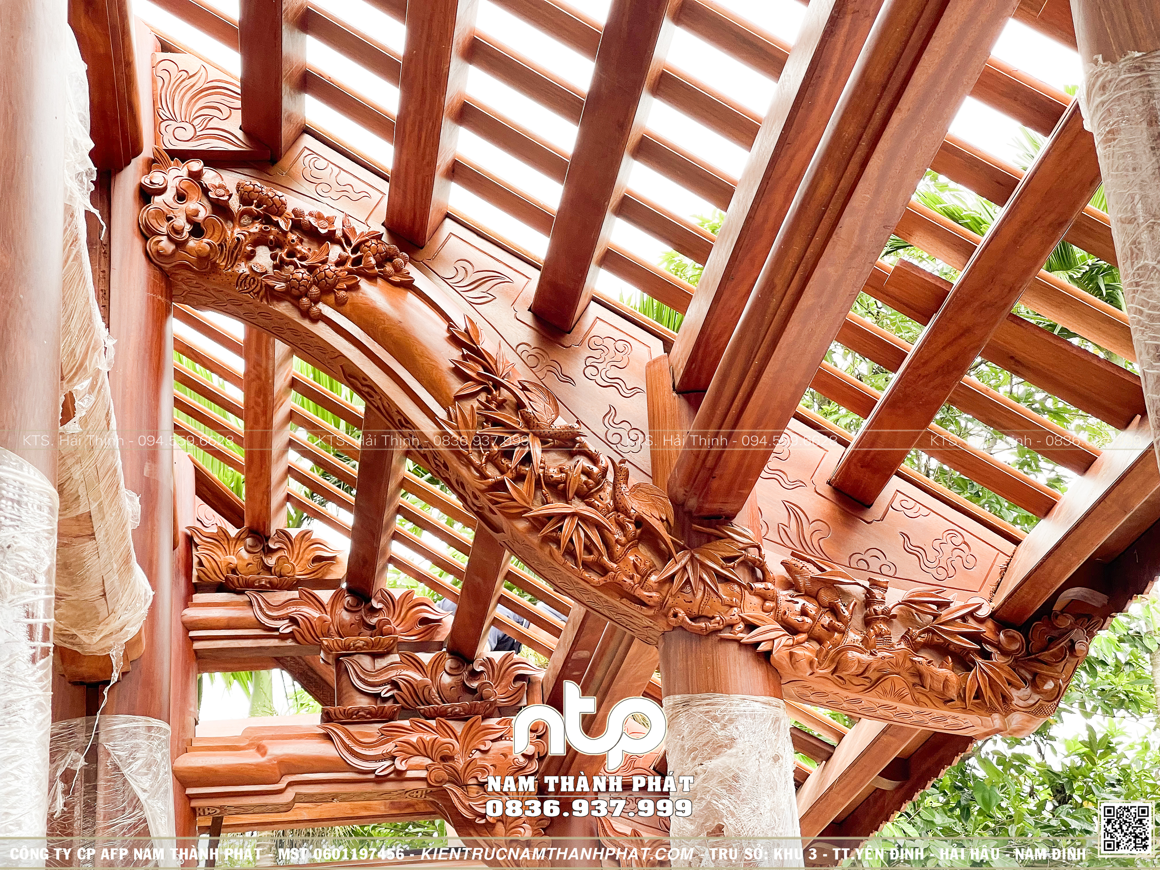 Kẻ hiên nhà gỗ cổ truyền tại Nam Thành Phát được đục kênh bong thủ công, đặc biệt là họa tiết tứ quý Tùng Cúc Trúc Mai, mỗi chi tiết đều mang ý nghĩa riêng biệt, tượng trưng cho bốn mùa và bốn đức tính cao quý của người quân tử.