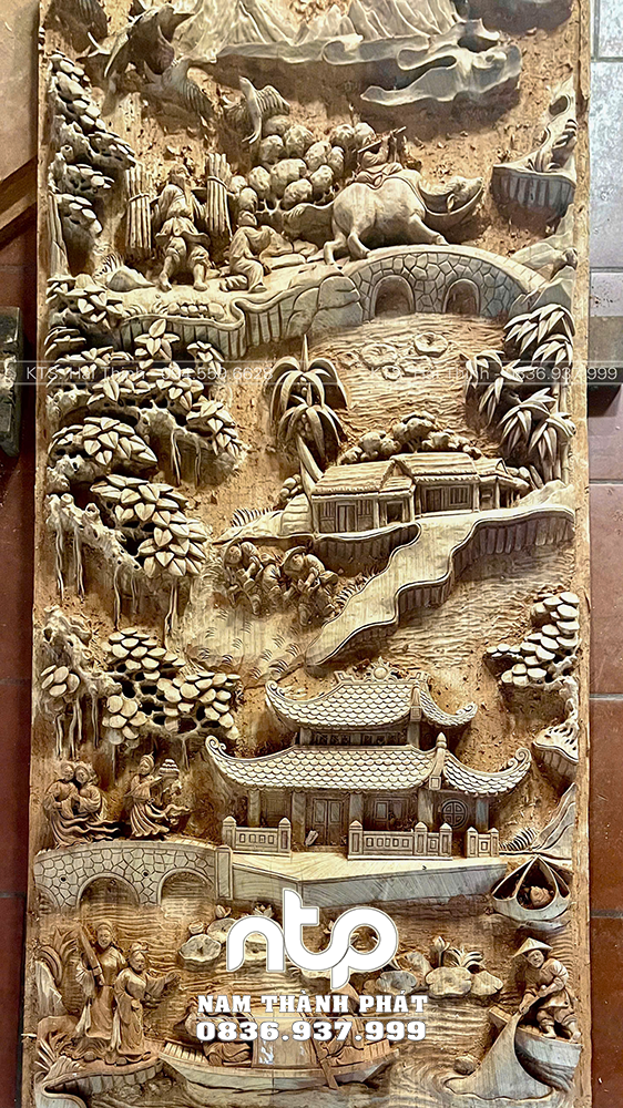 Tranh gỗ được đục kênh bong sâu và sắc nét, thần thái