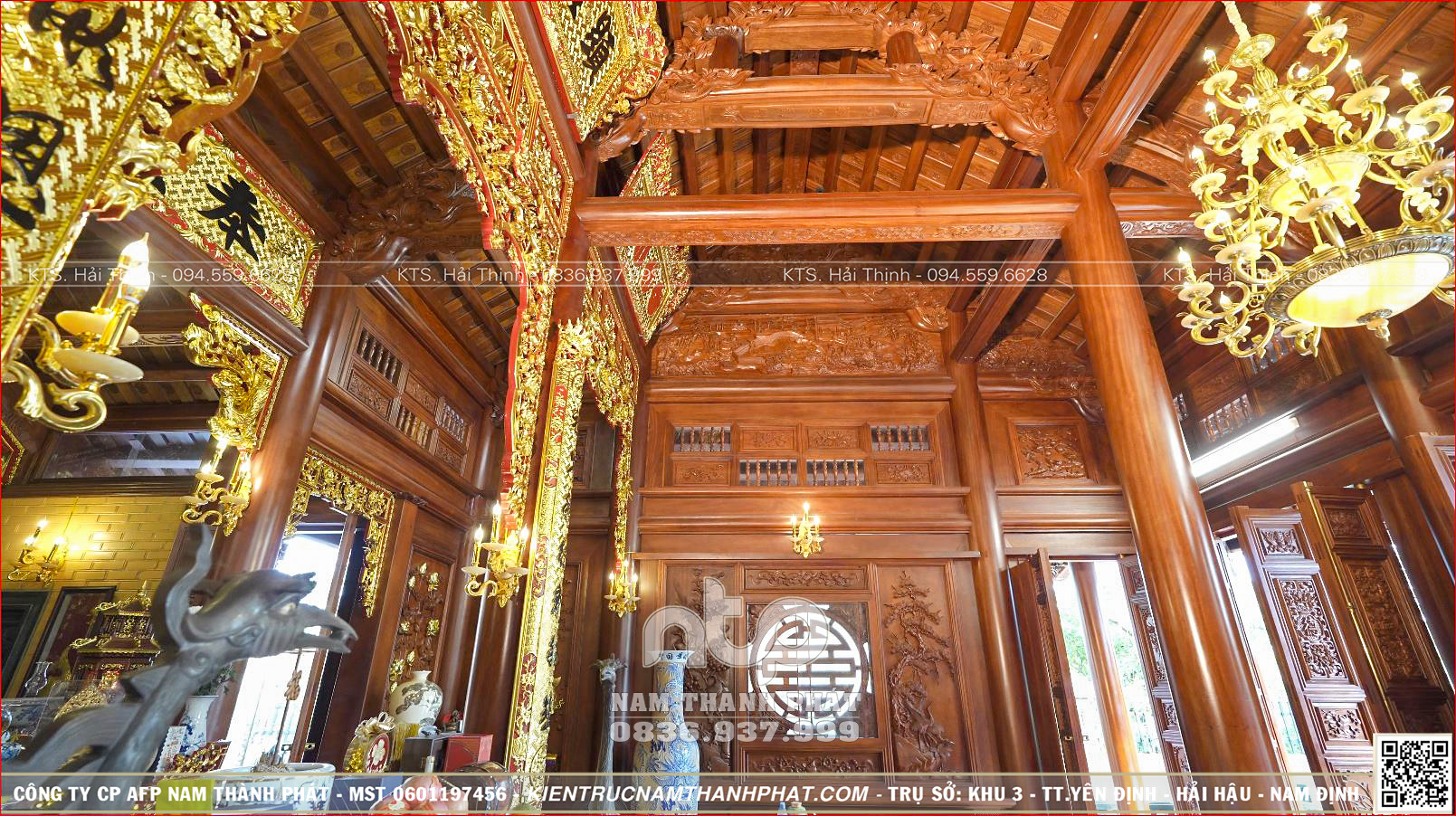 Nội thất ngôi nhà gỗ 3 gian vô cùng rộng rãi và bề thế