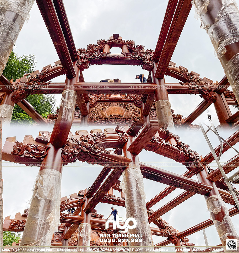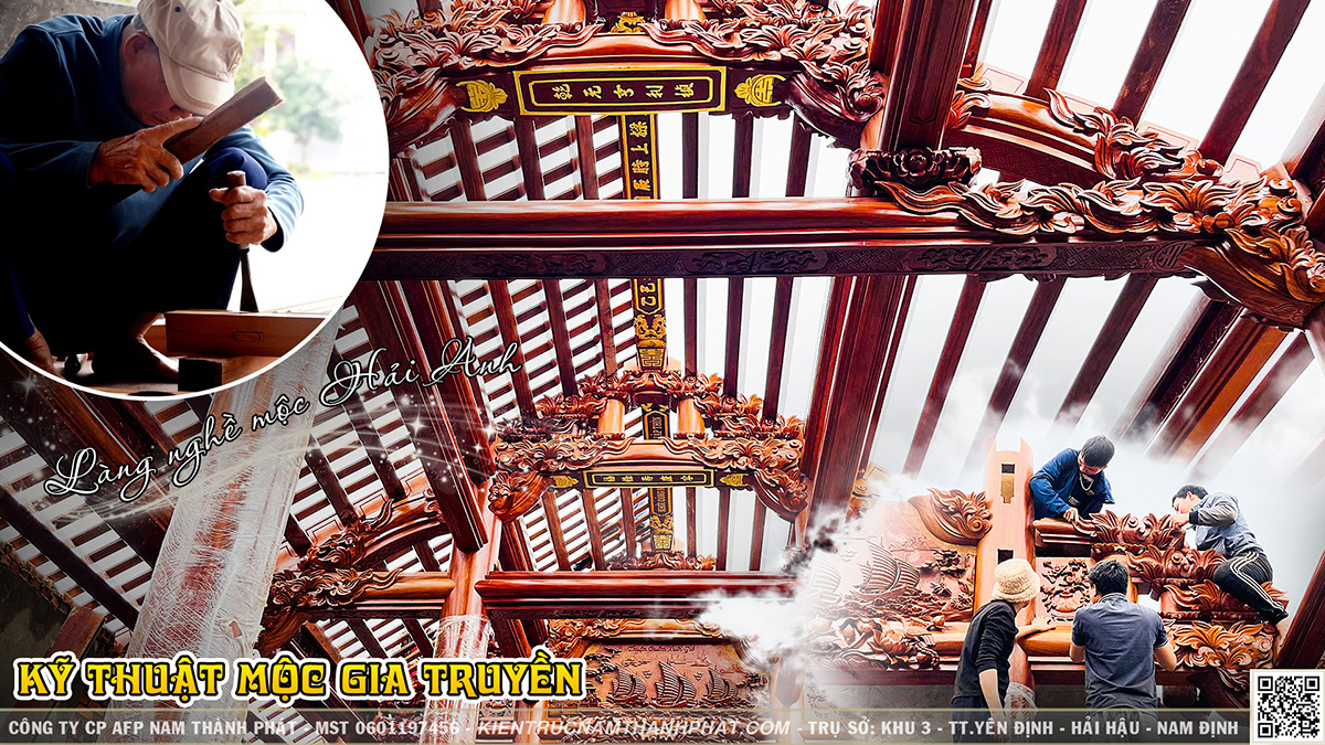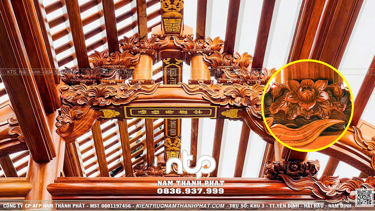 Điểm đặc biệt tại Nam Thành Phát nằm ở tay nghề thợ mộc gia truyền, am hiểu tường tận kỹ thuật ghép mộng – đục chạm – xẻ gỗ – ráp cấu kiện theo đúng tiêu chuẩn truyền thống Bắc Bộ.