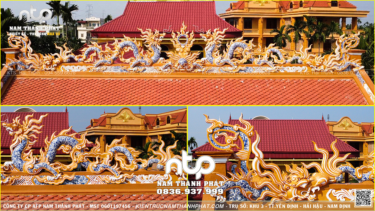 Các chi tiết của "Rồng chầu mặt nguyệt" trên nóc được hoàn thiện thủ công tỉ mỉ