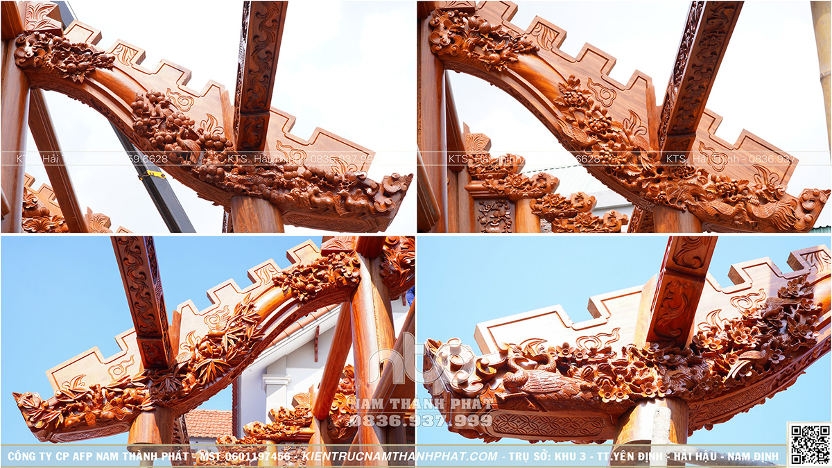 Một vài chi tiết hoa văn độc quyền trên khung nhà gỗ Nam Thành Phát
