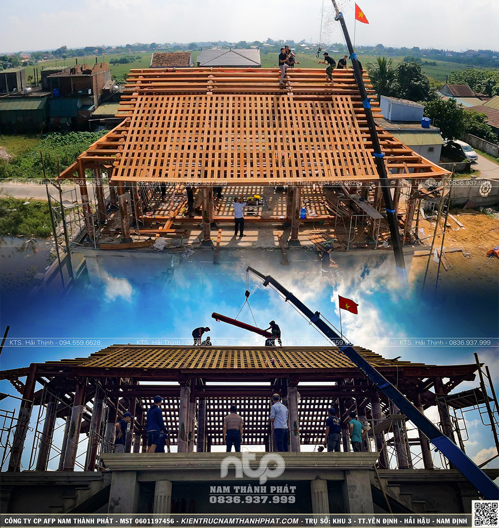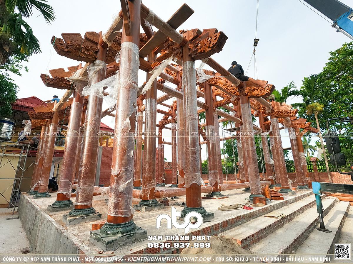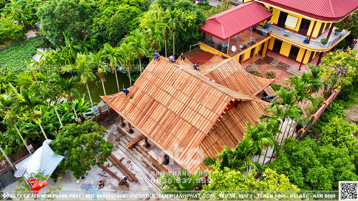Từ khâu chuẩn bị vật liệu, đến quá trình dựng cột, lắp vì kèo, hoàn thiện mái ngói… tất cả đều được đội ngũ Nam Thành Phát thực hiện tỉ mỉ, chính xác và an toàn tuyệt đối.