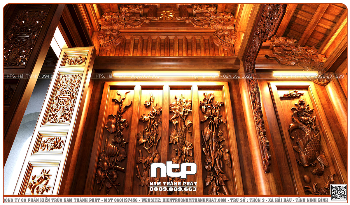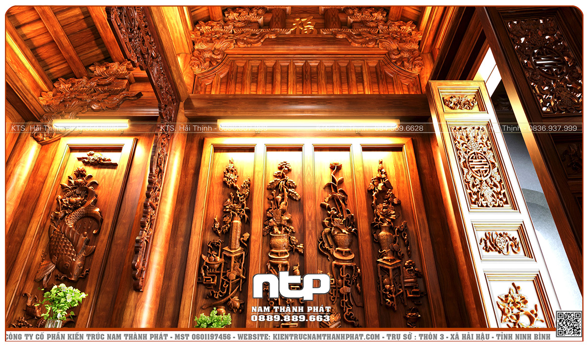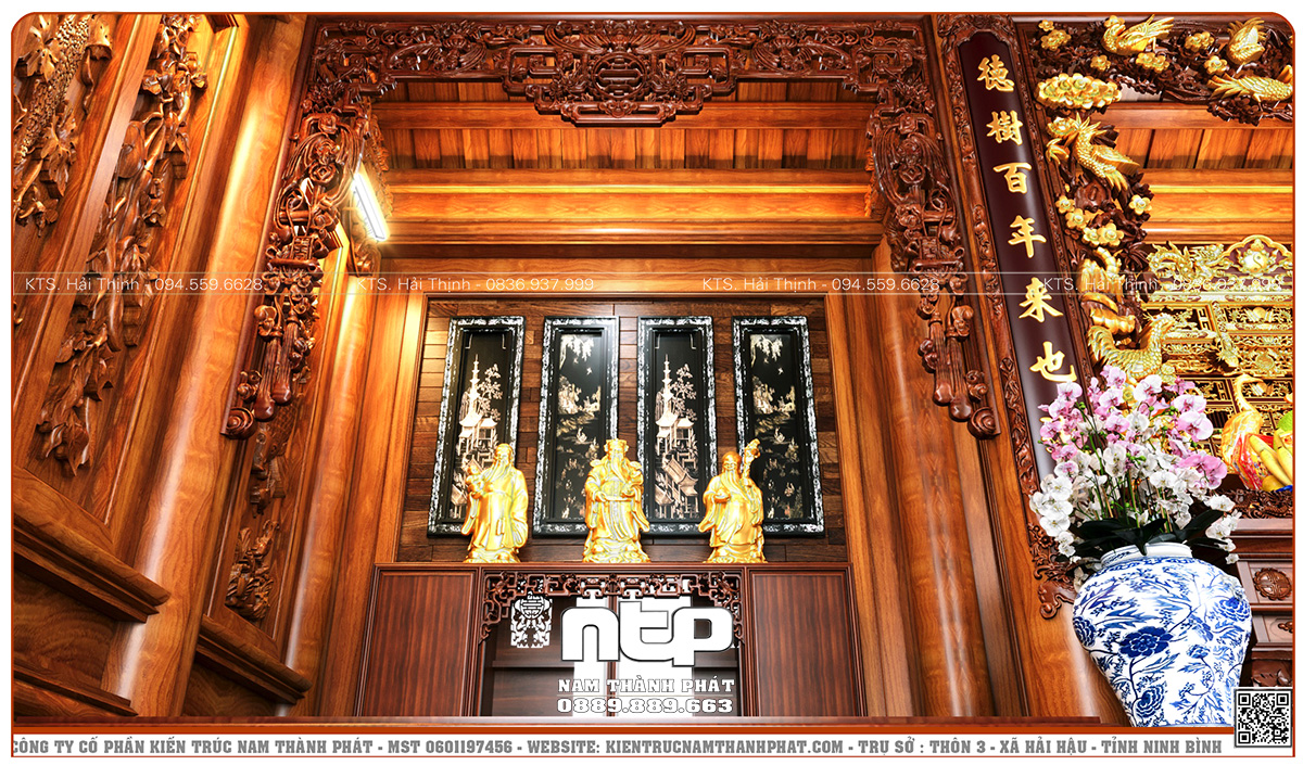 | Loại hình | Nội thất nhà gỗ 3 gian cổ truyền | Đơn vị thiết kế | Nhà gỗ Nam Thành Phát |