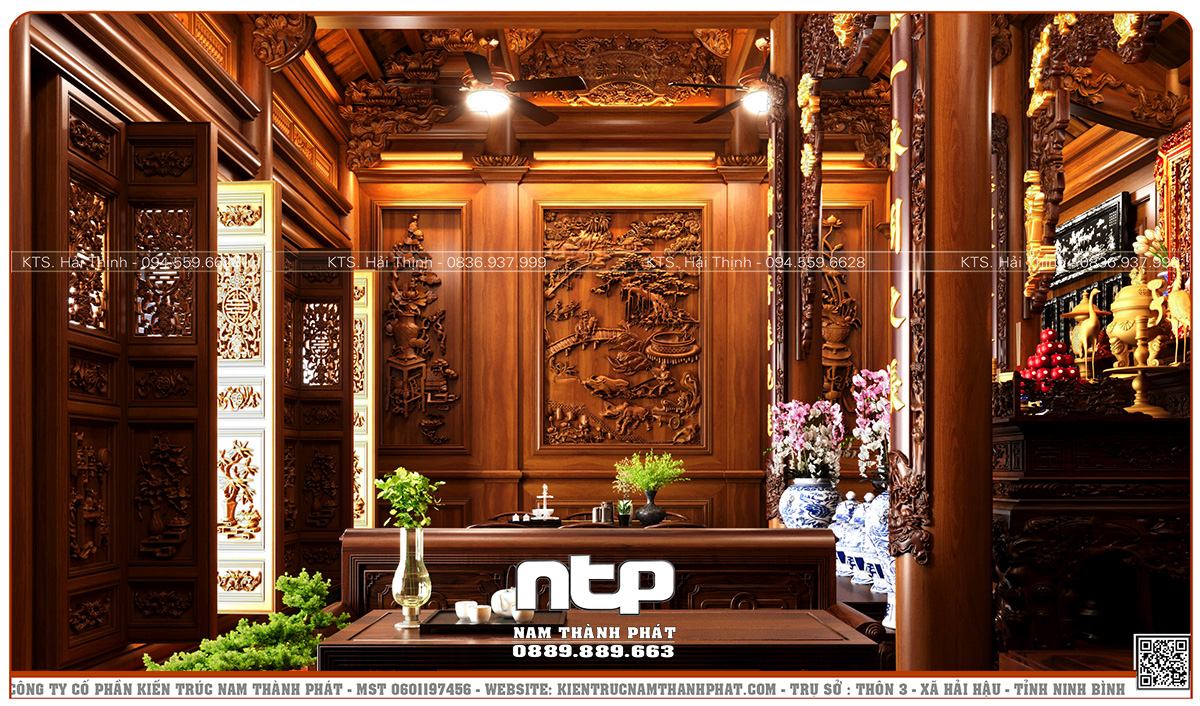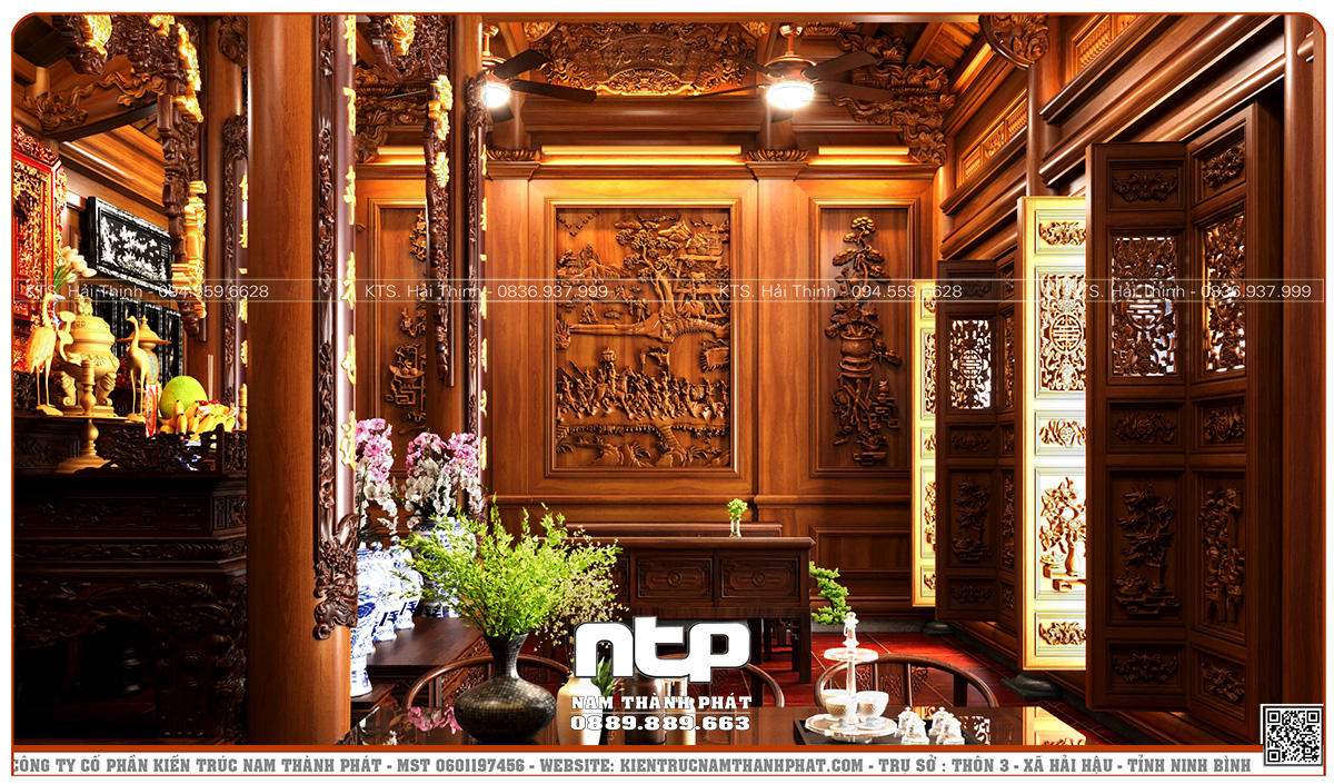 | Loại hình | Nội thất nhà gỗ 3 gian | Đơn vị thiết kế | Nhà gỗ Nam Thành Phát |