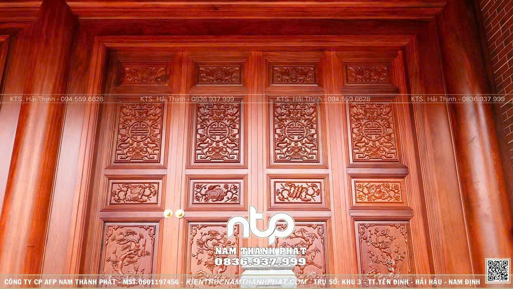 Vì cửa tiếp xúc thường xuyên, nên chọn kỹ thuật kênh bong nông – mặt phẳng gia công nhẵn, kẽo mối ghép chắc. Bộ tranh tứ quý trên cửa bức bàn của nhà gỗ cổ truyền có ý nghĩa thể hiện sự mong muốn về hạnh phúc, sung túc và trường thọ.
