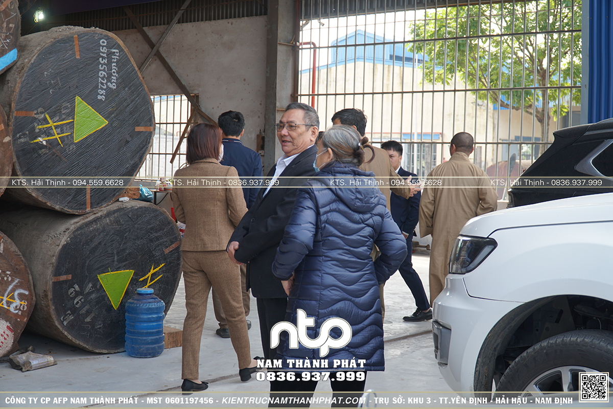 Khách hàng đến kiểm tra tiến độ xưởng gỗ Nam Thành Phát