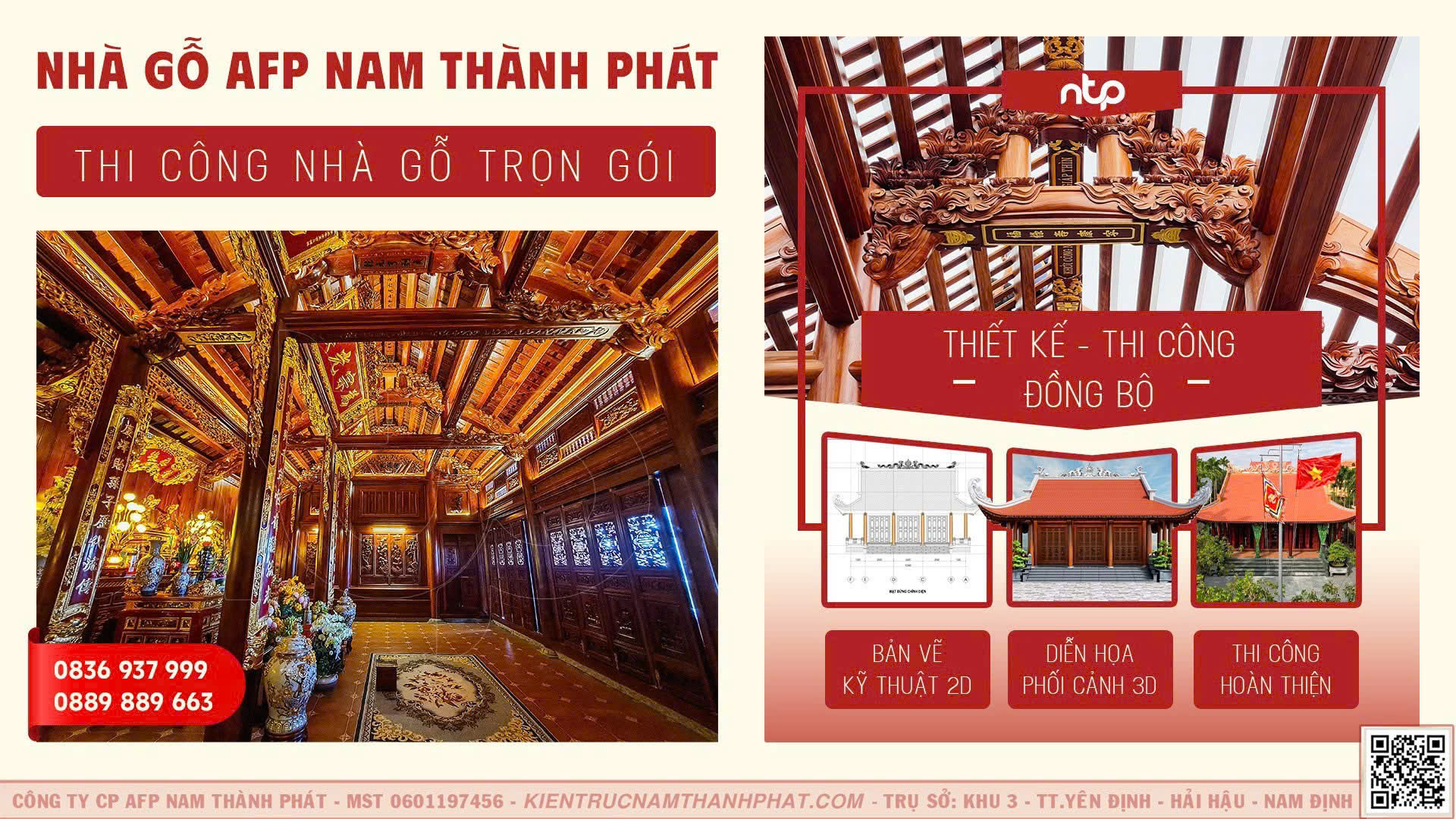 Nam Thành Phát là đơn vị chuyên thiết kế và thi công trọn gói các công trình nhà gỗ cổ truyền, từ nhà gỗ 3 gian, 5 gian, 7 gian cho đến các công trình tâm linh như từ đường, nhà thờ họ. Với nhiều năm kinh nghiệm trong nghề, đơn vị không chỉ chú trọng đến yếu tố thẩm mỹ mà còn đặt nền tảng kỹ thuật kết cấu lên hàng đầu, nhằm đảm bảo mỗi công trình đều đạt độ bền vững và chuẩn mực kiến trúc truyền thống.